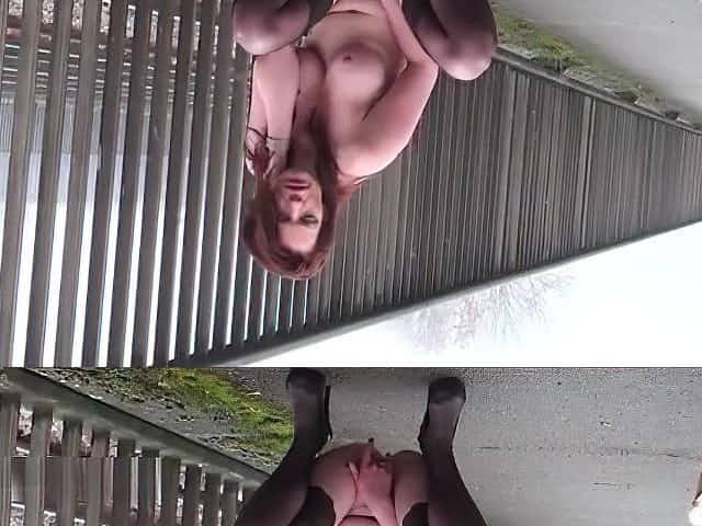 Mature flashing mum outdoors with sexy exhibitionist milf Jerry showing tits and pussy outdoors for voyeur watchers