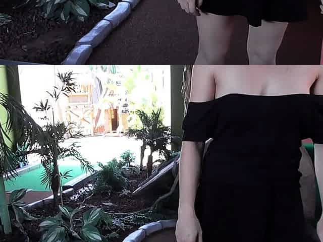 Shy Goth Exhibitionist - Vegas Trip Daytime Braless Deep V