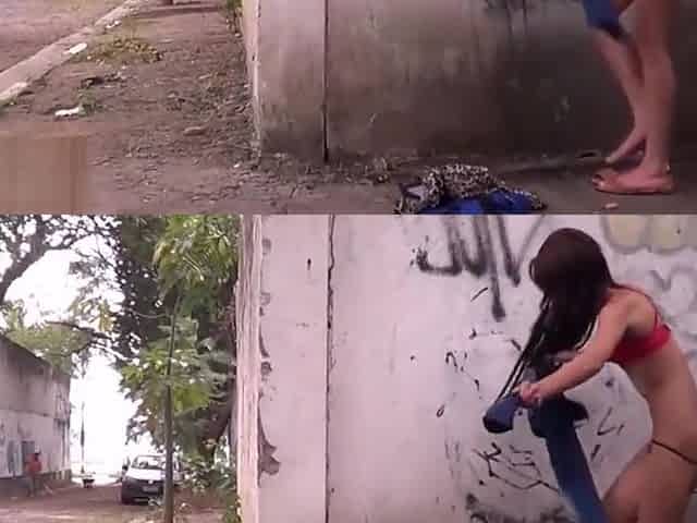 Backalley flashing teen Elisas shapely latina exhibitionism