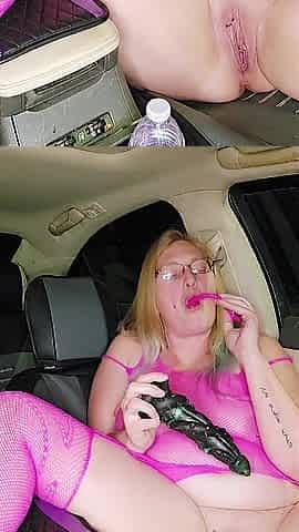 Stretching cunt and squirting in car