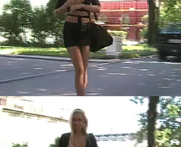 Russian blonde walks around and shows boobs in public