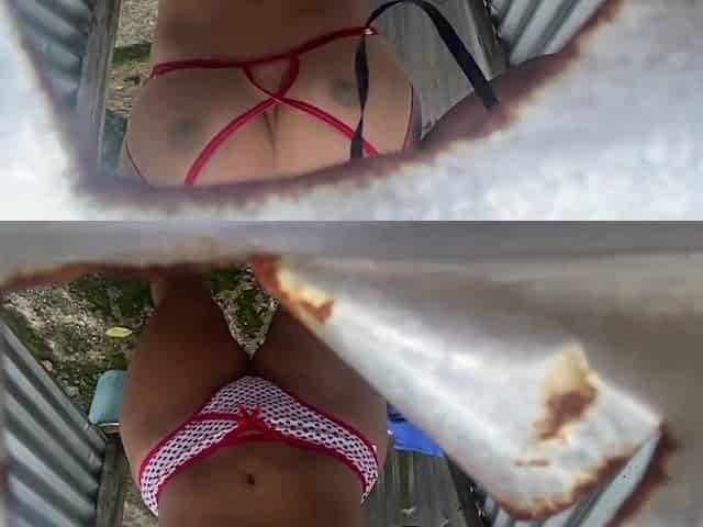 I catch her changing in a beach cabin