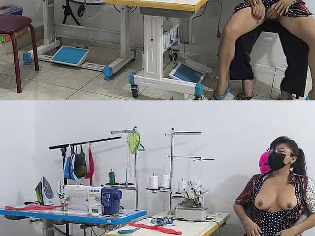 intense seduction in the sewing workshop