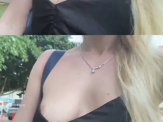 Public - Sexy Blonde Flashes Her Big Natural Tits In A Crowded Cafe. 6 Min