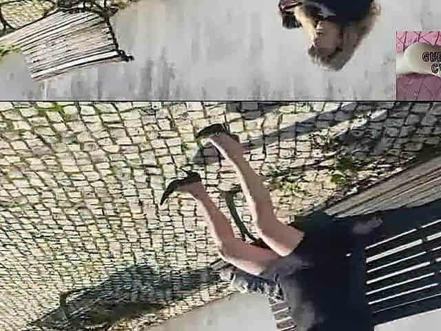 MEL EXIBINDO-SE NUM BANCO DE JARDIM