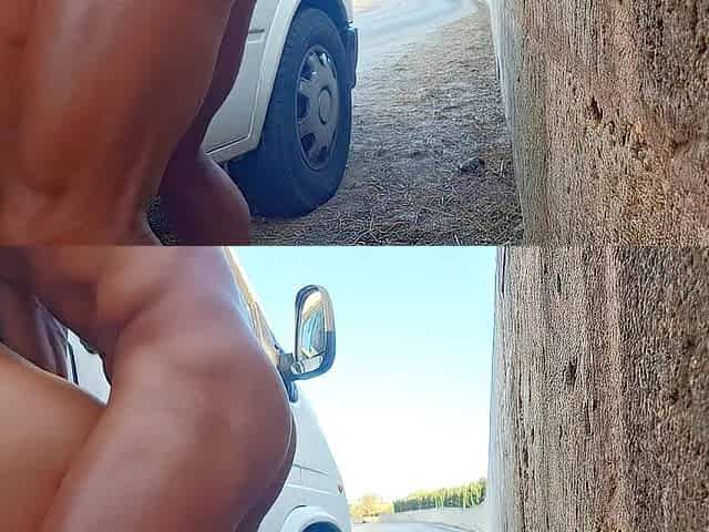 Concupiscent and exhibitionist pair screws on the road with cars passing by - Oral pleasure and eating snatch