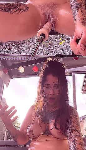 Wild Outdoor Ride: Ebony Vibrator Machine Squirt Next to Neighbors!