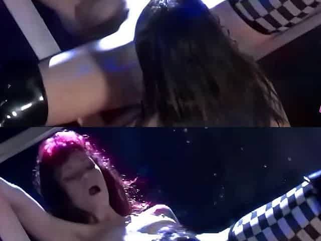 Exotic lesbian dancers rub their bodies together on stage and pleasure themselves with sex toys