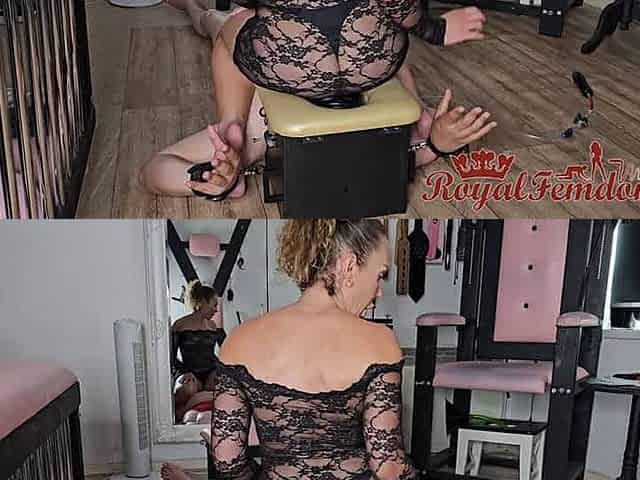 Esmeralda gets serviced through a hole in the wall with a messy blowjob