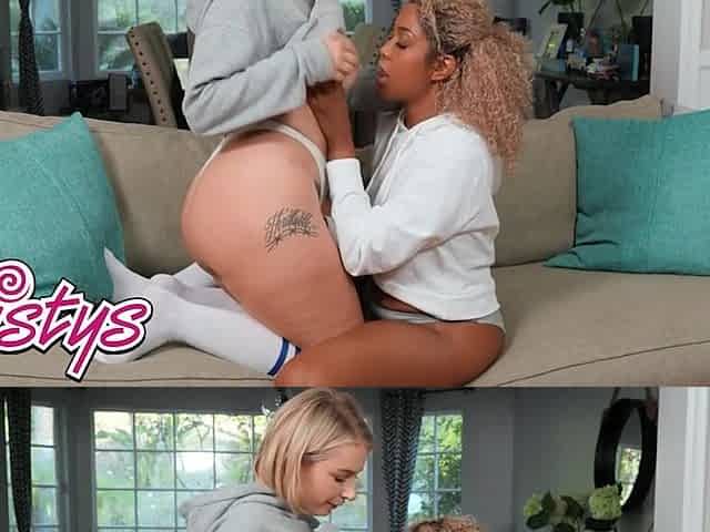 Lesbea Interracial tribbing and face sitting for youthful lesbo gals