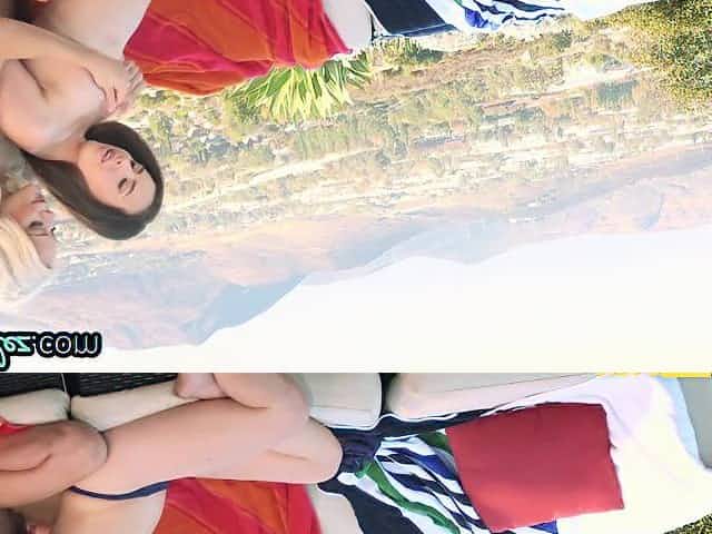 Outdoor interracial lesbian sex with big booty ebony - facesitting poolside