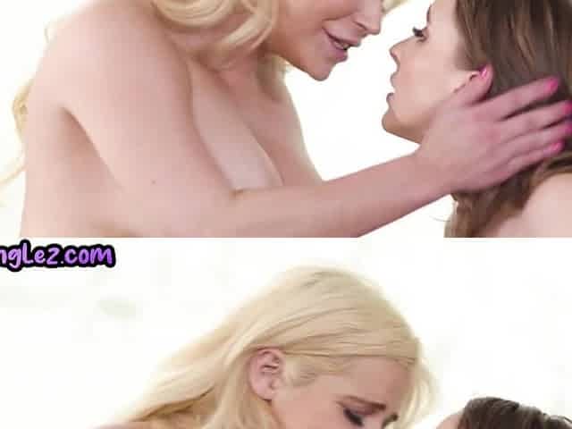 Petite blonde babe fingered by lesbian milf best friend