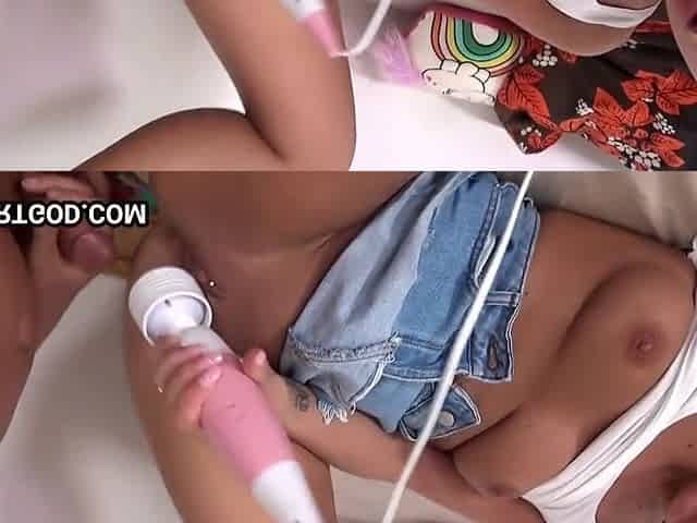 Busty babe fingering bff to remove the toy inside her pussy