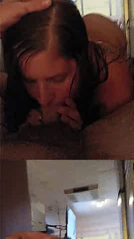 elle garde sa jupe vinyl pour lui faire une gaterie