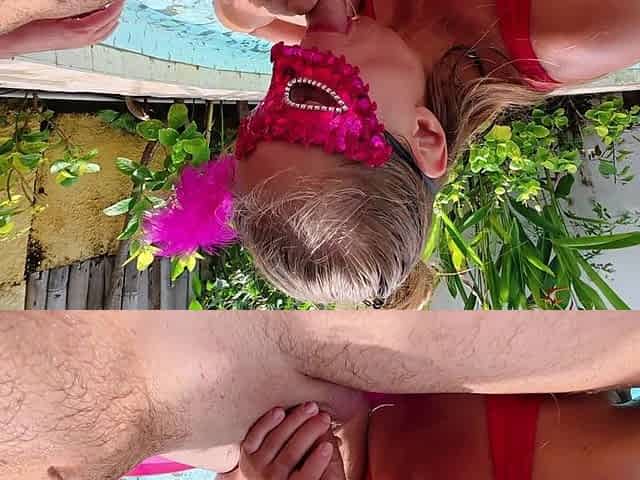 Amateur Hotwife Gets a Messy Facial by the Pool