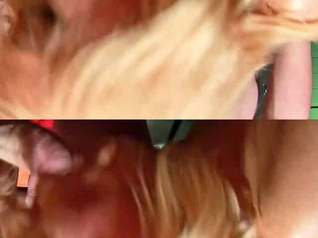 Sweet blonde amazed with big cock comes out of glory hole: Blowjob, Big Dick Oral Porn