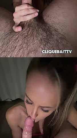 Blonde amateur MILF sucks and jerks for facial