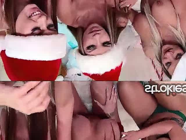 Strokies – Holiday Dong Tug: Hawt Honeys Jill, Cali, And Raven Jerks Your Wang For Christmas