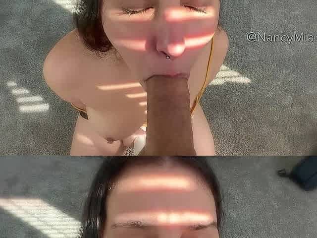 Stunningly pretty girlfriend blowjob and facial