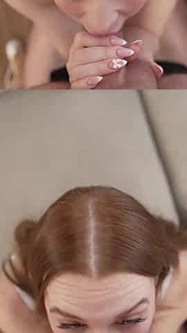Breasty Redhead Slurps, Rides, and Gets Splashed