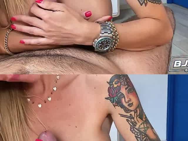 POV Bigtitted blondie jerking off a man