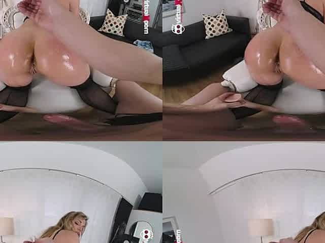 He fucks me with a big sleeve and cums twice. First in my mouth and the second he eats from my leg. Now he wants my ass