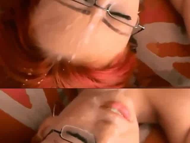 Nerdy Cumslut Gets Twat Breasts And Face Drenched In Cum