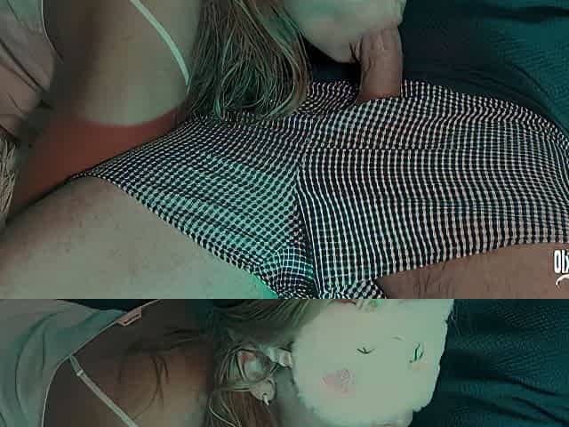Cum shock after two weeks of jerk off! Stepsister licks clean