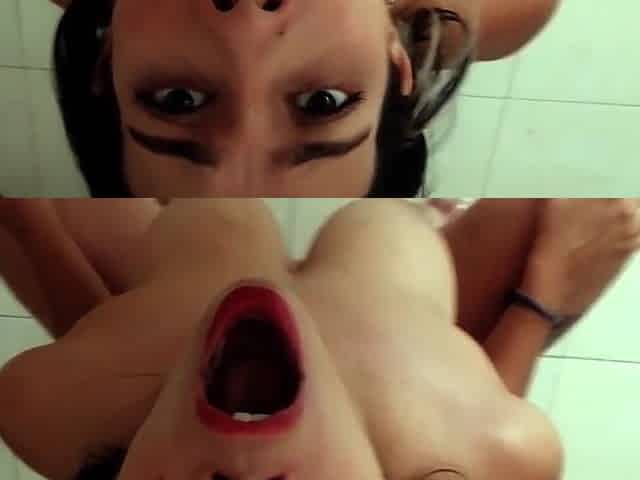 Hot threesome with facial - Slutty brunette suck cock deepthroat
