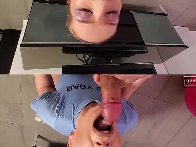 Horny, blonde deep throat by Russian teen with big bum and small body. Cum in gullet and on face. Cumshot and rigid tough sex. F