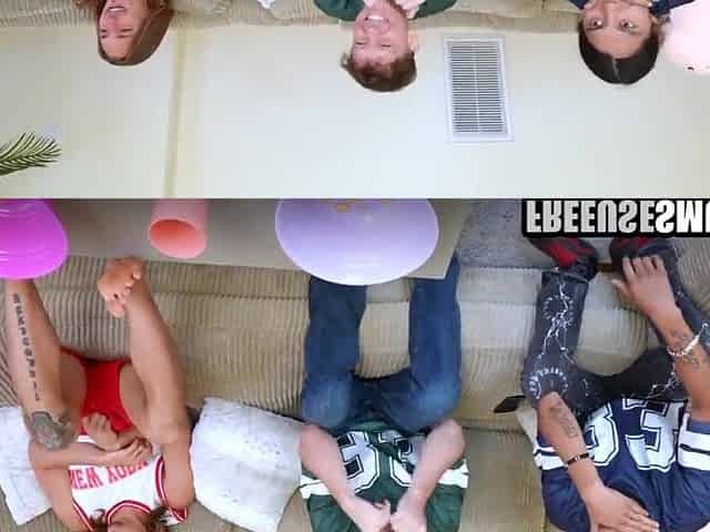 Lucky Guy Has Lots Of 3-some Fun With His Slim Brunette Latina Wife & Her Hot Slender Inked Step-sis