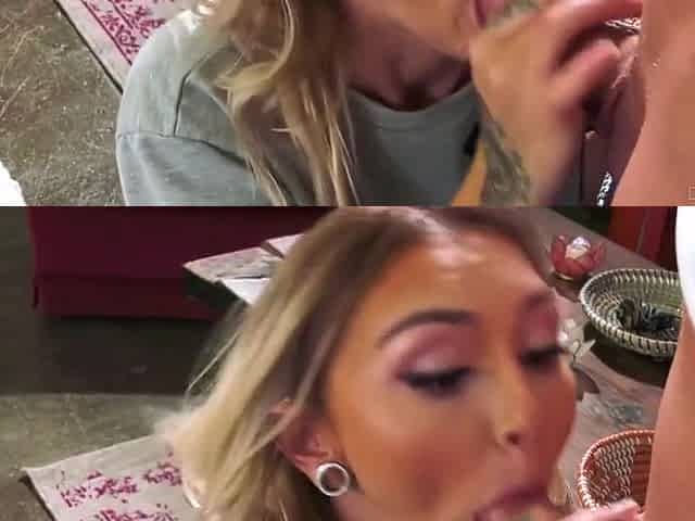Wet Stepsis And Her Horny Bff Gave Amazing Double Blowjob - Kenzie Reeves
