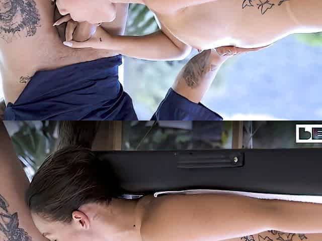 I take my curvy roommate Linda Clauss to pound town after gym session