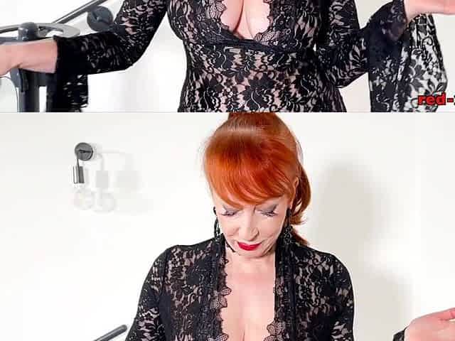Glamorous lascivious mother i'd like to fuck shows her large breasts and tries to suck 'em for u