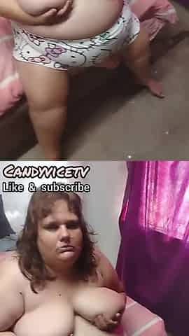 Obese Stacy likes to play with her breasts everyday to get subscribers