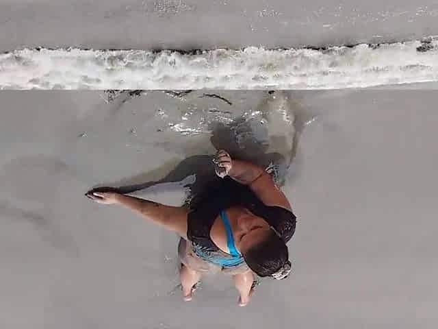 Nice-looking corpulent twat void urine on the beach