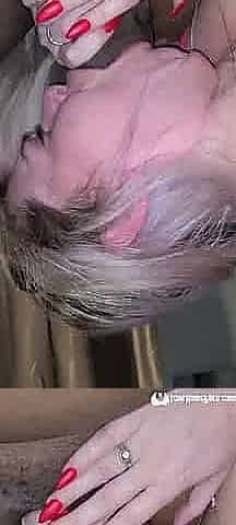 Nasty blonde cuckolder choking on a fat dick and enjoying
