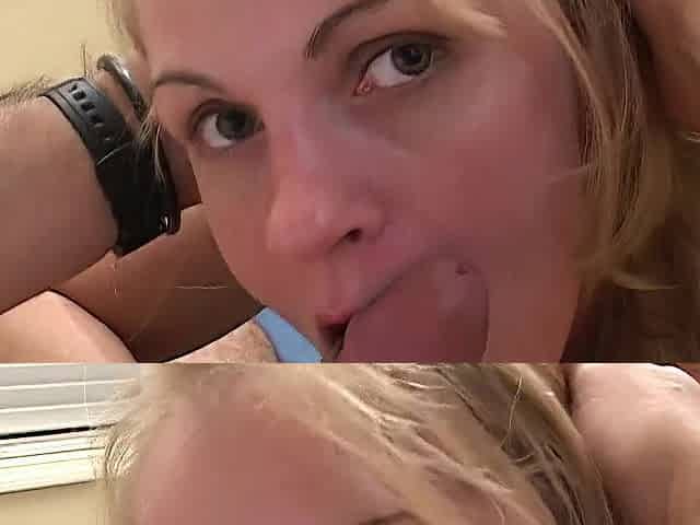 Blonde slut choking on a fat cock and having her twat ravaged