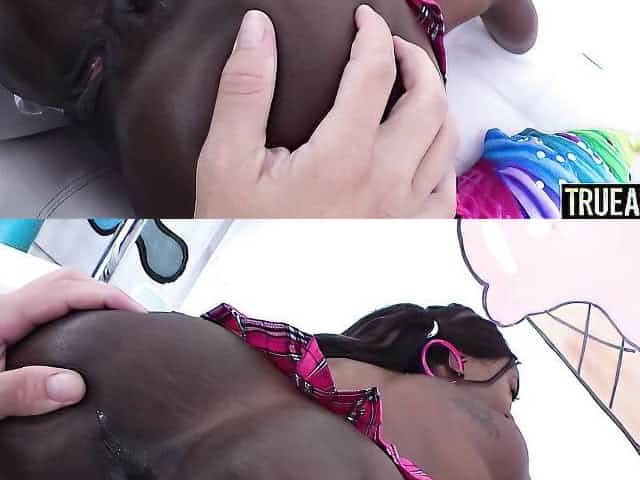 Cute ebony model Ana Foxxx fucked by a white fat penis
