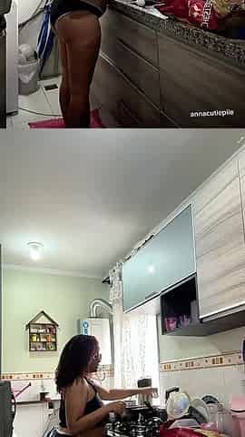 Chubby Latina Cooking in Panties Shirt Big Ass Fat Belly Jiggle