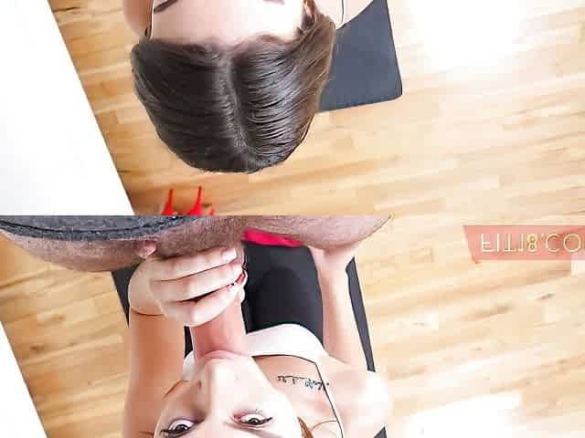 Fitness girlfriend Mae Milano feels a fat wiener deep in her shaved pussy
