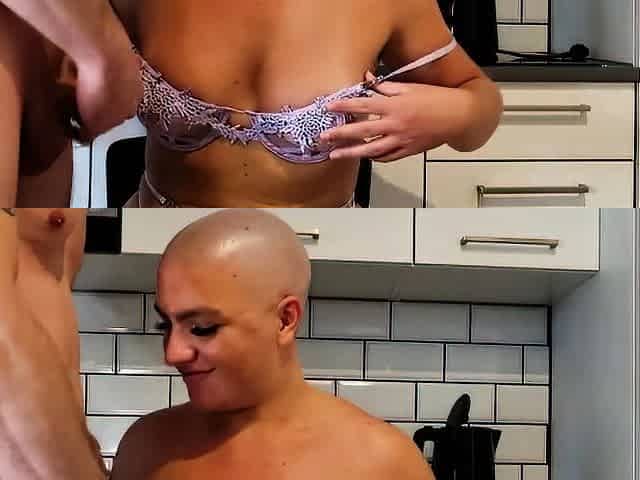 Kitchen fuck with chubby bald teen