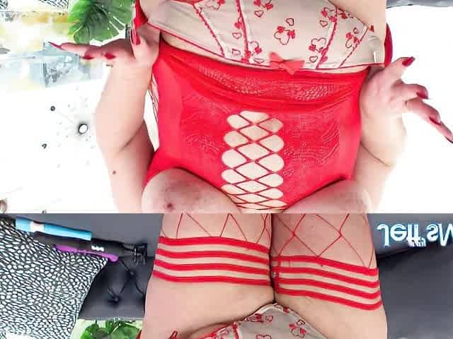 Angel in red lingerie DayDream Daisy jumps on a fat cock cock
