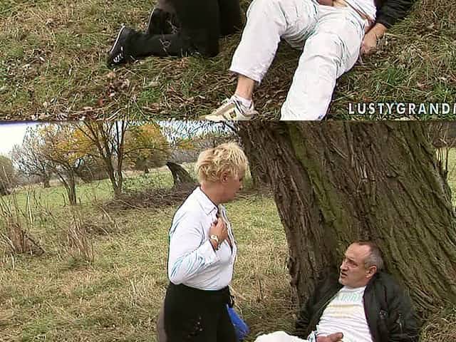 Short haired ugly busty old country nympho gives hot rimjob outdoors