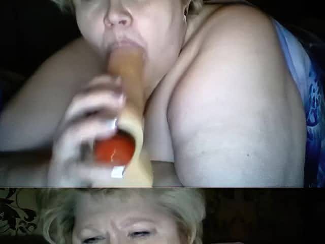 Fat granny licks a dildo on webcam