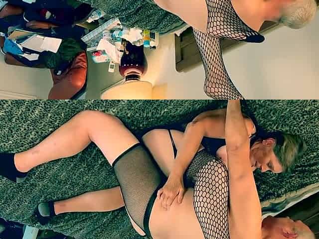 Extremely fat granny fucks in black fishnet stockings