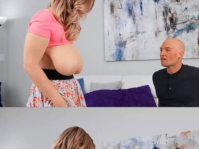 Large titted brunette hair could not hold back from giving a oral pleasure to her step- father