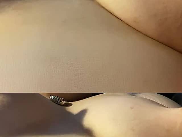 Obese blond in white, lacy pants is showing her large breasts, in front of the camera