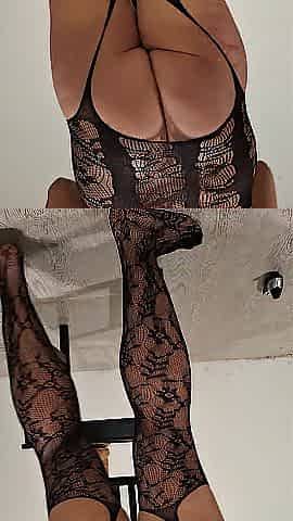 Fingering myself in this sheer sparkly bodysuit. Don't you love how wet my fat hairy pussy sounds?