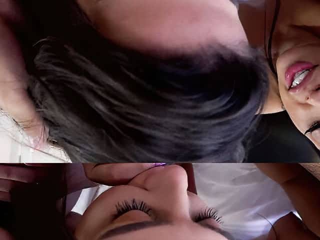 POV threesome with two slutty brunette gals who are craving luscious sex